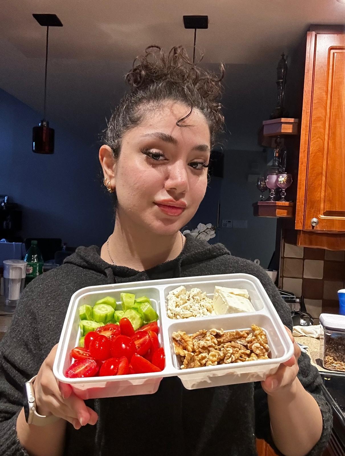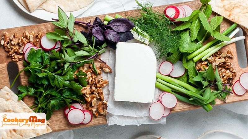 For this dish you can choose either feta cheese or cream cheese and to make it a bit more extra and delicious, you can add cumin to the feta cheese like how i decided to do. For vegetables, you can have fresh herbs with walnuts or cucumber, tomatoes and walnuts which I used and the bread can be either pita or the traditional persian barbari bread.