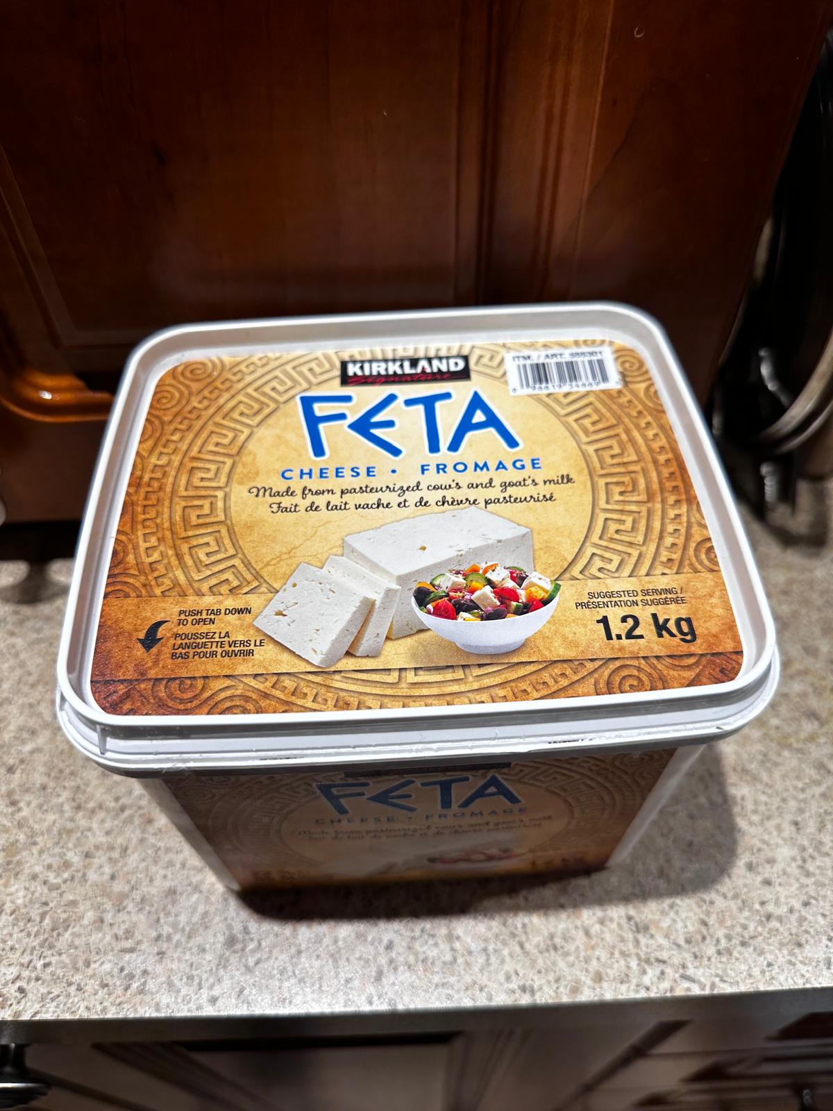 1. To prepare the cheese, we take a piece of feta cheese and smash it a little bit and add the cumin to it.