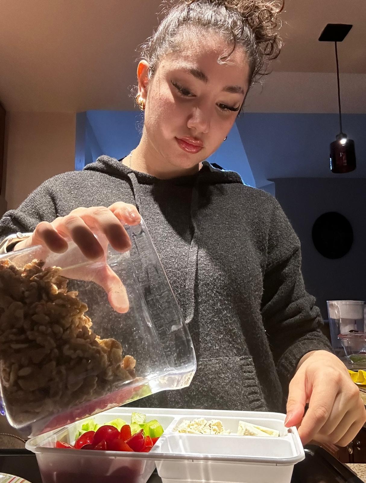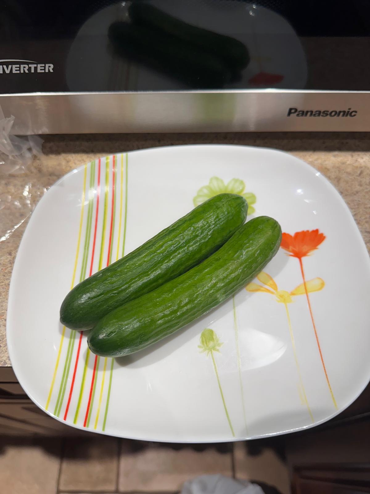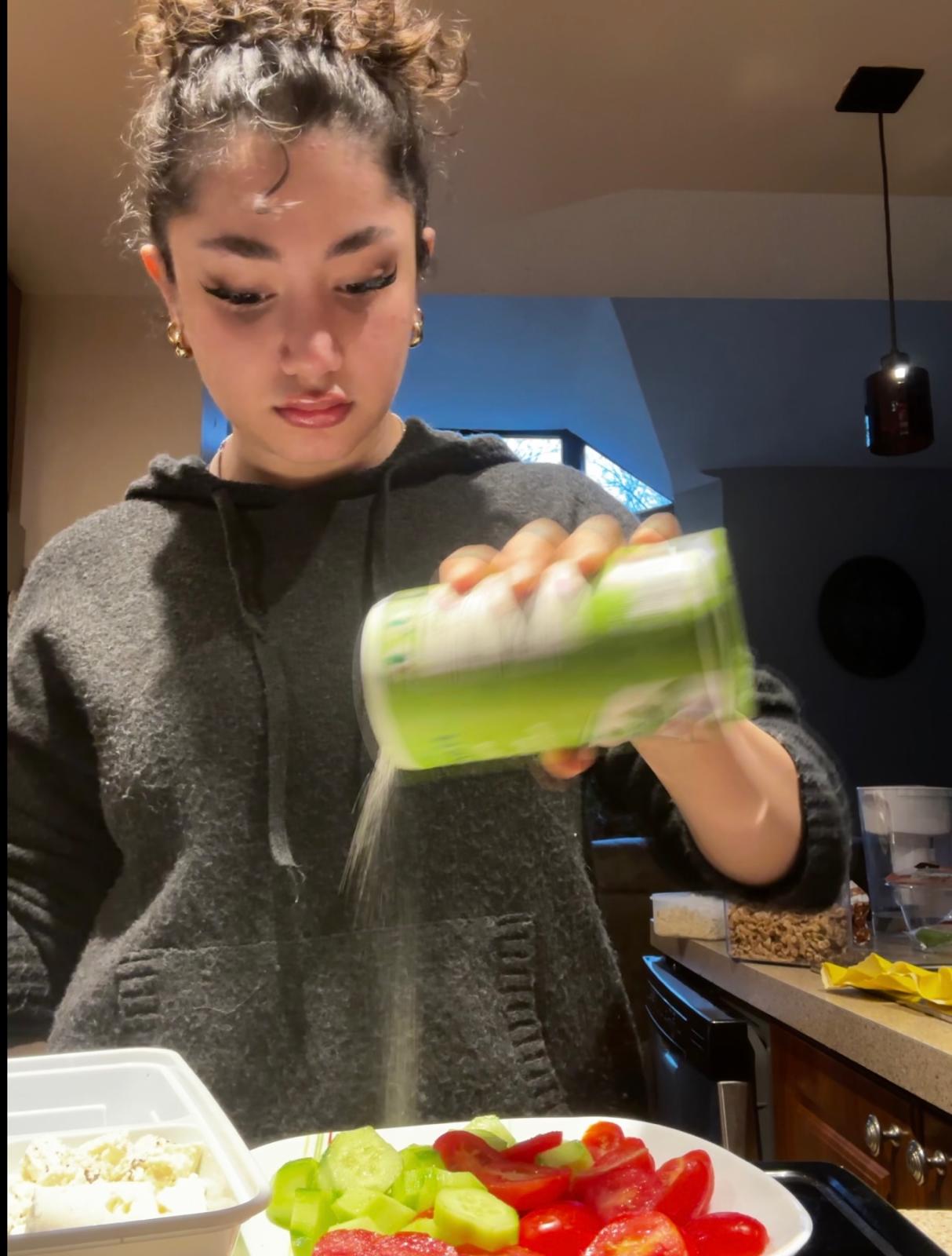 3. then we add a bit of salt to the cucumber and tomatoes.